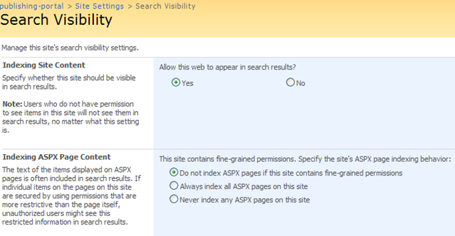 Anyhow change the setting to ‘Always index all aspx pages on this site’ and they will be indexed.